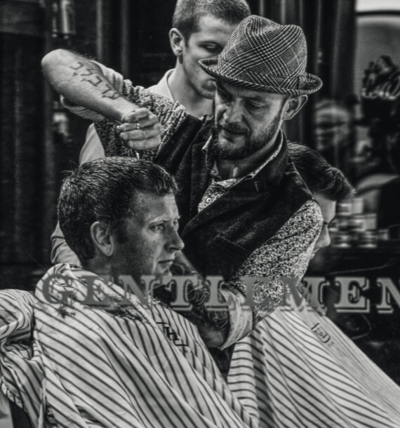 All haircuts are finished with a full style and a hot lather straight razor neck shave.